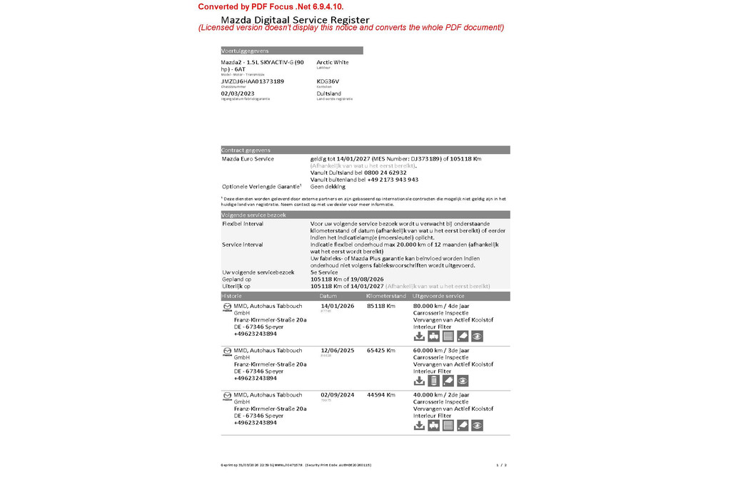 Deze mooie en nette Mazda 2 automaat is altijd bij de Mazda dealer in onderhoud geweest. Een betere onderhoudshistorie kunt u zich niet wensen (100% dealer onderhouden). Alles is vastgelegd in het DSR (Digitaal Serve Register). De Comfort uitvoering beschikt over aangename opties, denk hierbij aan: park pilot, LED verlichting, Apple carplay, Android auto, navigatie systeem, stoel verwarming en noem maar op.